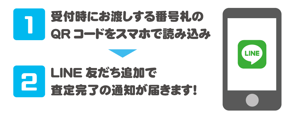 対象店舗での買取受付時に、番号札記載のQRコードで友だち登録をするだけ!