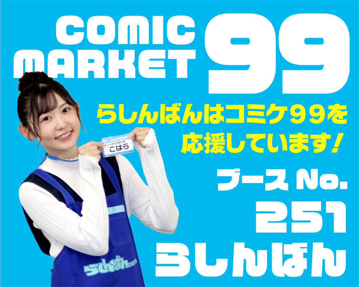 らしんばんブースに、小原莉子さん(等身大パネル)と写真撮影ができる「小原莉子とコミケ来た!」フォトスポットを設置いたします。